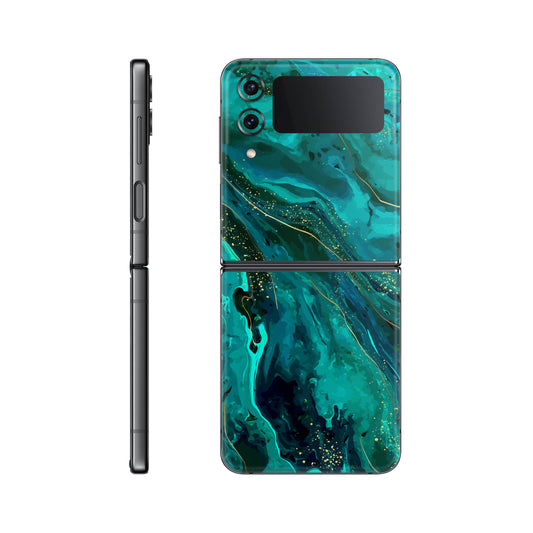 Folie de protectie Samsung Galaxy Z Flip 3, eSkins Signature, Skin Emerald Flow
